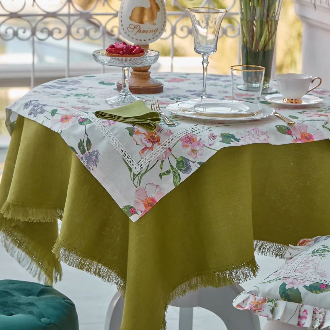 Questo centrotavola in lino e cotone con stampa floreale rientra nella linea cucina Gardenia di Preziosa Luxury Home. Il centrotavola Gardenia grazie alle stampe floreali colorate e l’aggiunta del pizzo applicato porta in casa i colori e la freschezza della primavera.