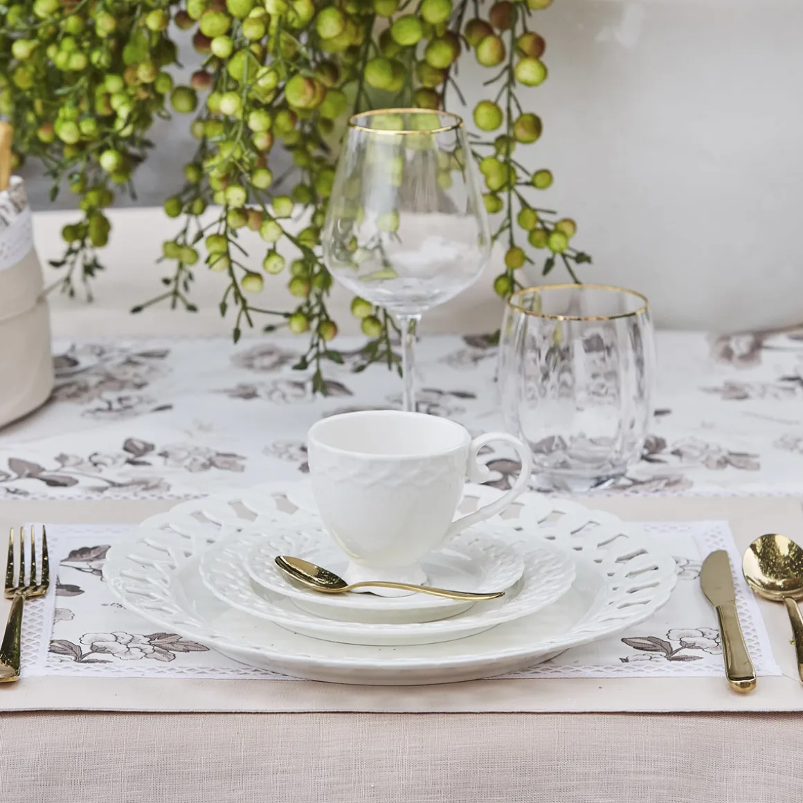 Set 3pz dessert/thè in porcellana con bordo lavorato traforato composto da: