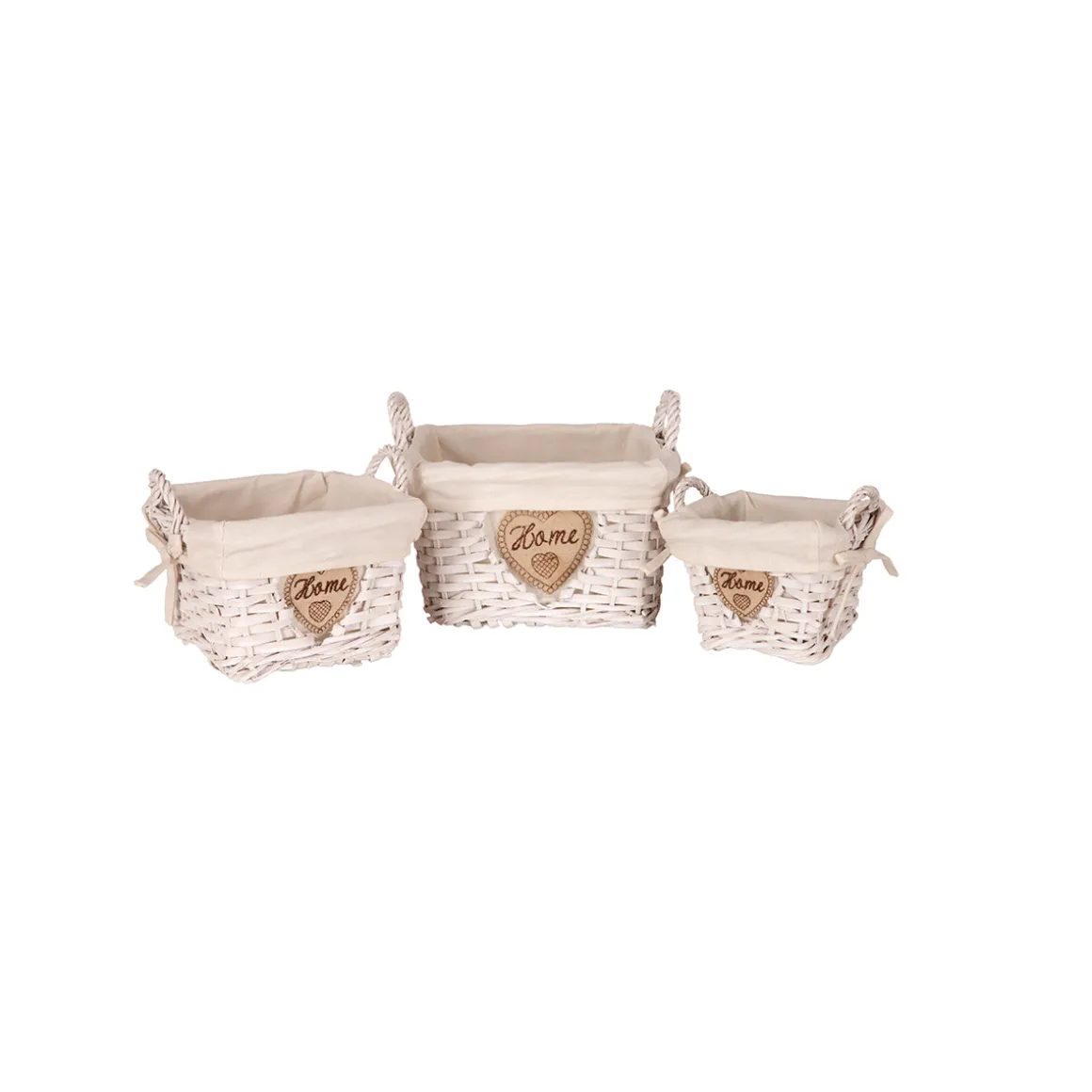 Splendido set composto da 3 cesti di vimini di forma quadrata adatti per la disposizione l’ordine in casa o in bagno .
