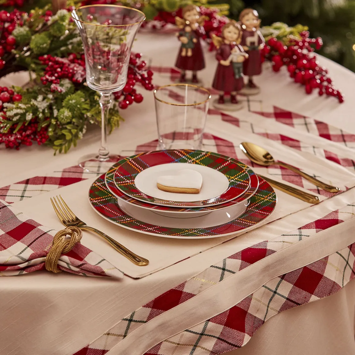 Tovaglietta americana tinta unita rossa o panna con bordo applicato a quadri e filo lurex oro, ideale per la tua tavola durante il periodo di Natale .