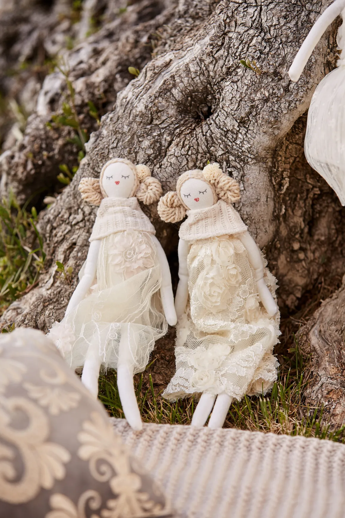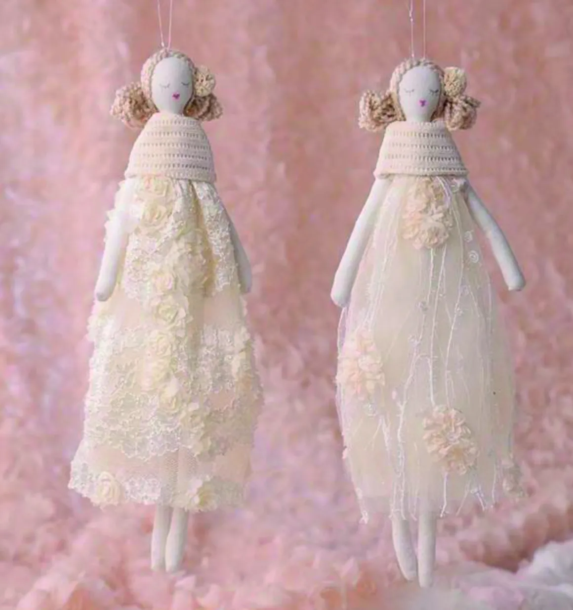 Bambola/angelo decorativo con gonna in tulle ricamato e roselline in rilievo