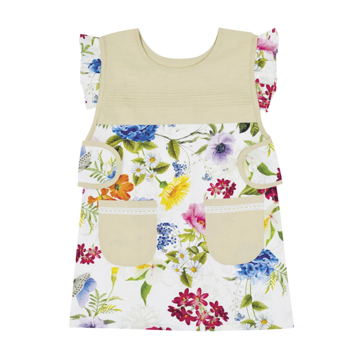 Casacca/Copriabito stampato e frill tinta unita – LAVORATO A MANOrnDimensioni: cm 70x90rn100% cotone