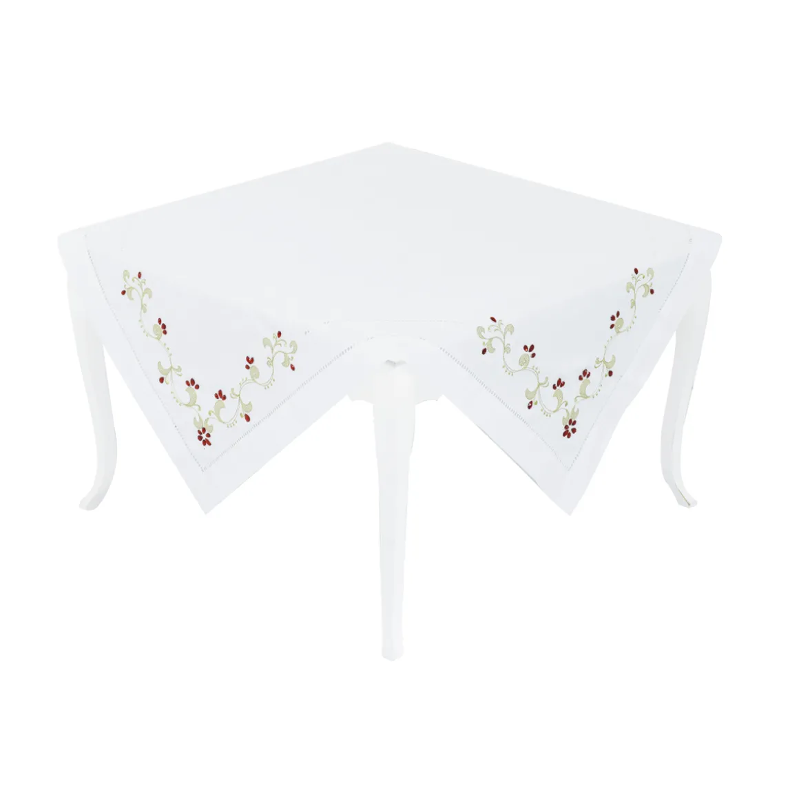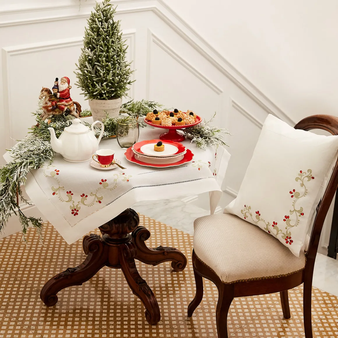 Centrotavola con decoro ricamato piazzato impreziosito da pietre cucite a mano e orlo a giorno lavorato a mano