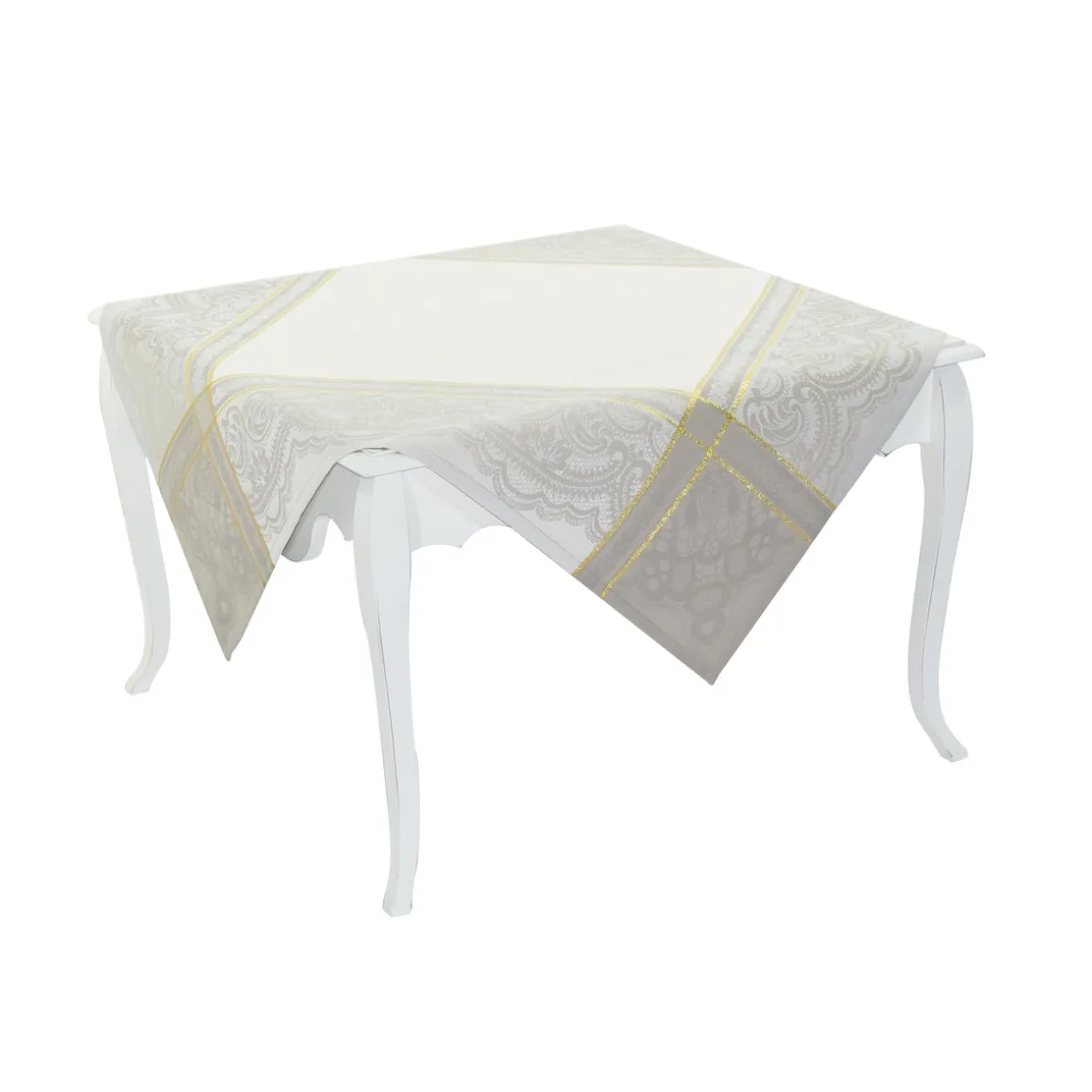 Questo centrotavola jacquard con filato in lurex e disegno stile barocco rientra nella linea Nativity della collezione natale di Preziosa Luxury Home. Il centrotavola Nativity unisce eleganza e tradizione per una casa unica durante le festività natalizie.