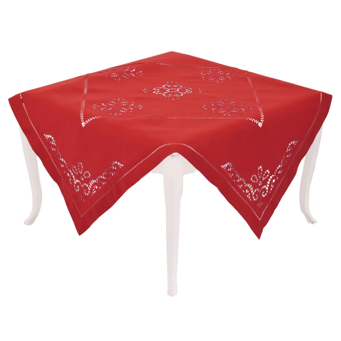 Centrotavola tinta unita rosso con ricamo ad intaglio, punto a giorno e punto gigliuccio. Ricamato a mano,questo centrotavola della Christmas Collection di Preziosa Luxury Home regalerà alla vostra tavola un tocco di eleganza ed eccellenza,in perfetto stile natalizio.