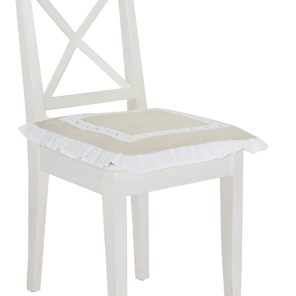 Questa coppia di coprisedia in lino e cotone con ricamo punto a giorno rientra nella linea Gold della collezione natale di Preziosa Luxury Home. Il set di 2 coprisedia Gold con dettagli e particolari veste la tua casa del firmamento durante le festività natalizie