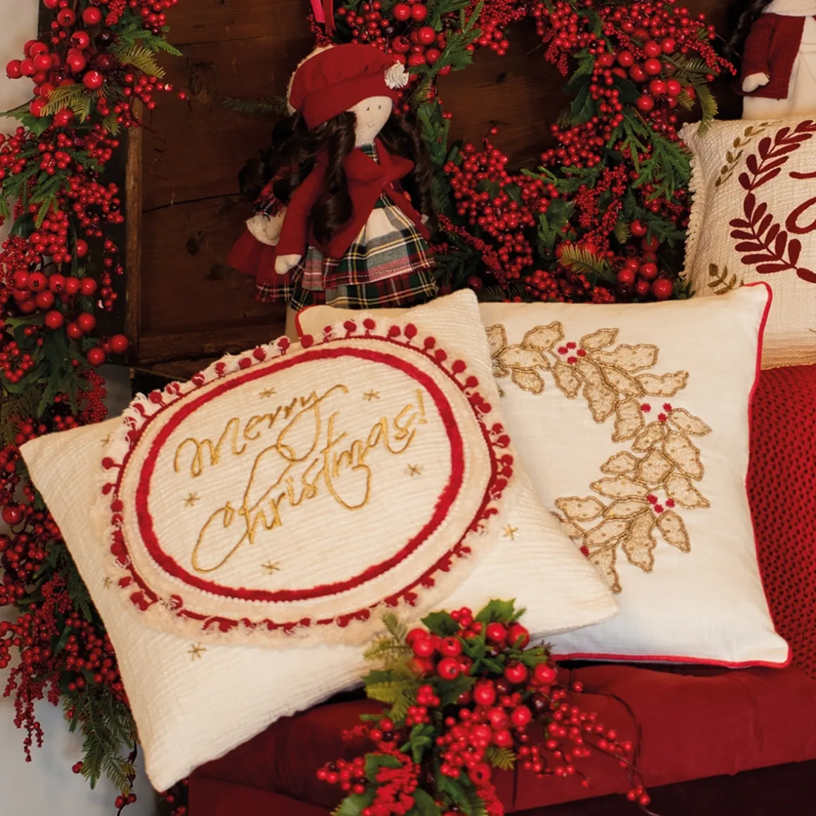 Il copricuscino con cerniera lavorato a mano con ricamo Merry Christmas rientra negli articoli della collezione natale di Preziosa Luxury Home. Il copricuscino in cotone con ricamo oro è perfetto per accendere tutta la magia del natale sulla tua tavola.