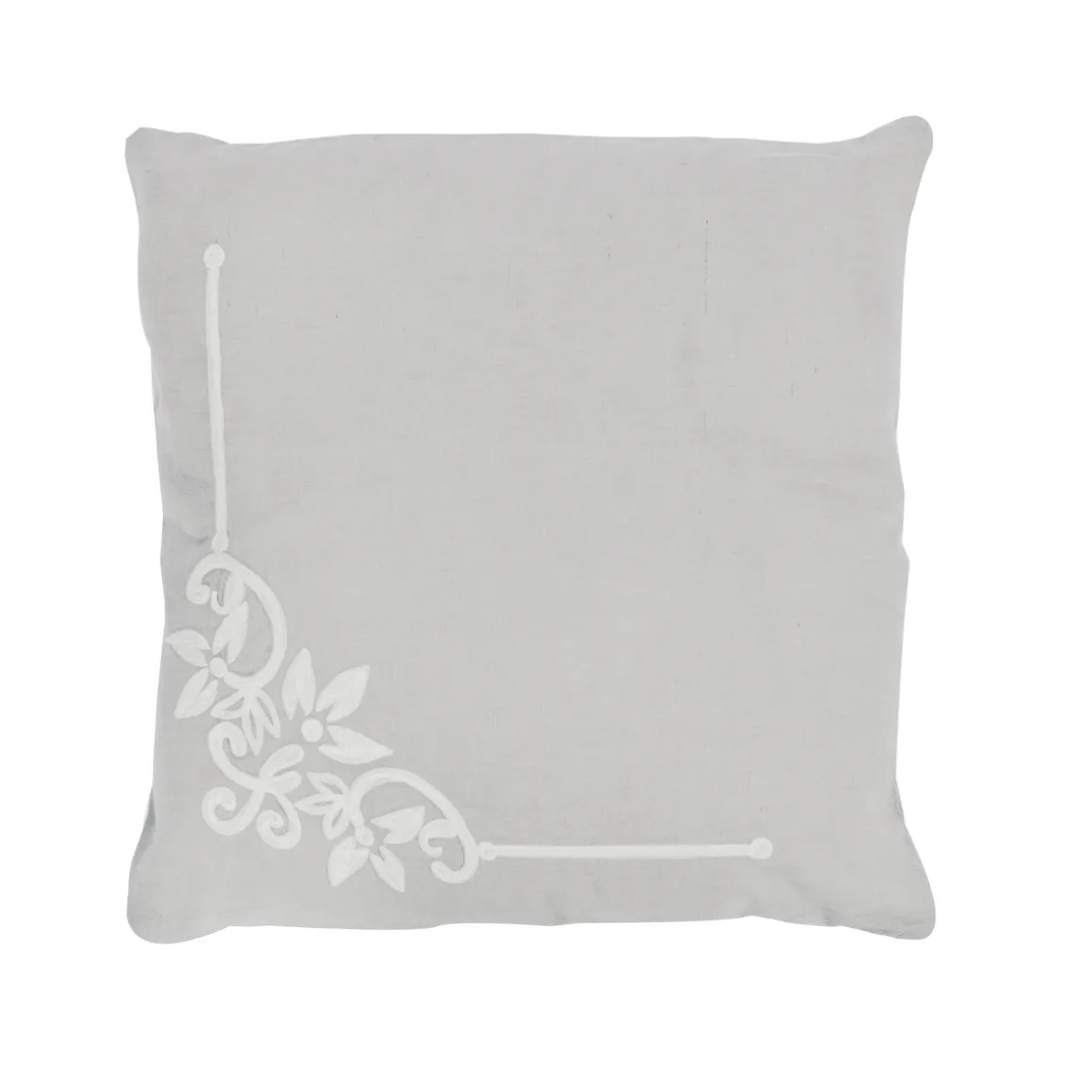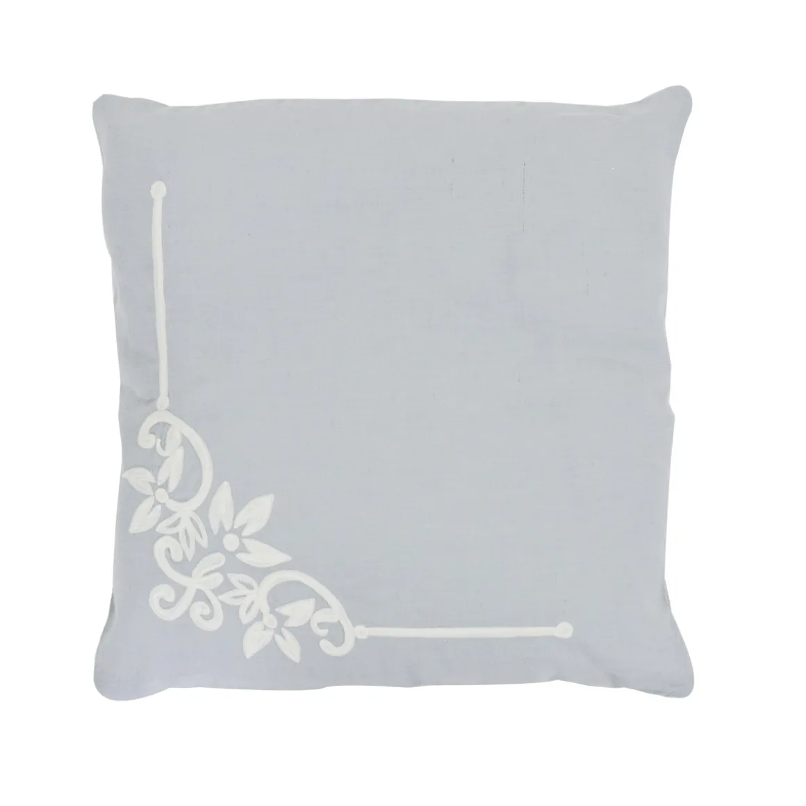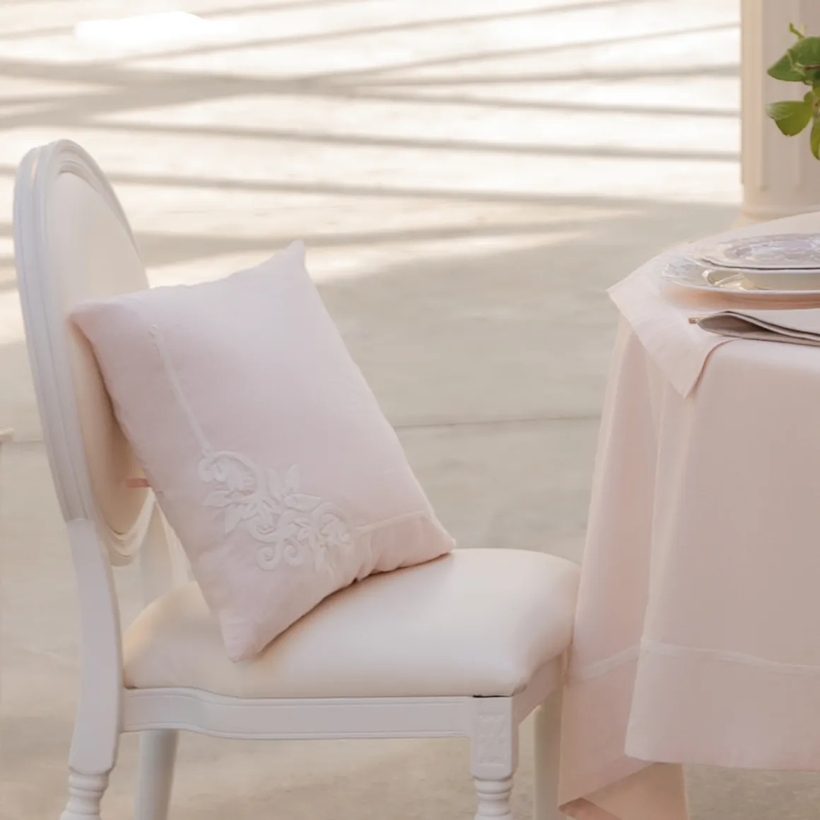 Questo copricuscino in lino e cotone rientra nella linea cucina Annabelle di Preziosa Luxury Home. Il copricuscino Annabelle con ricamo lavorato a mano è disponibile nei colori cielo, cipria e grigio, perfetto per donare alla casa un’atmosfera romantica ed elegante.