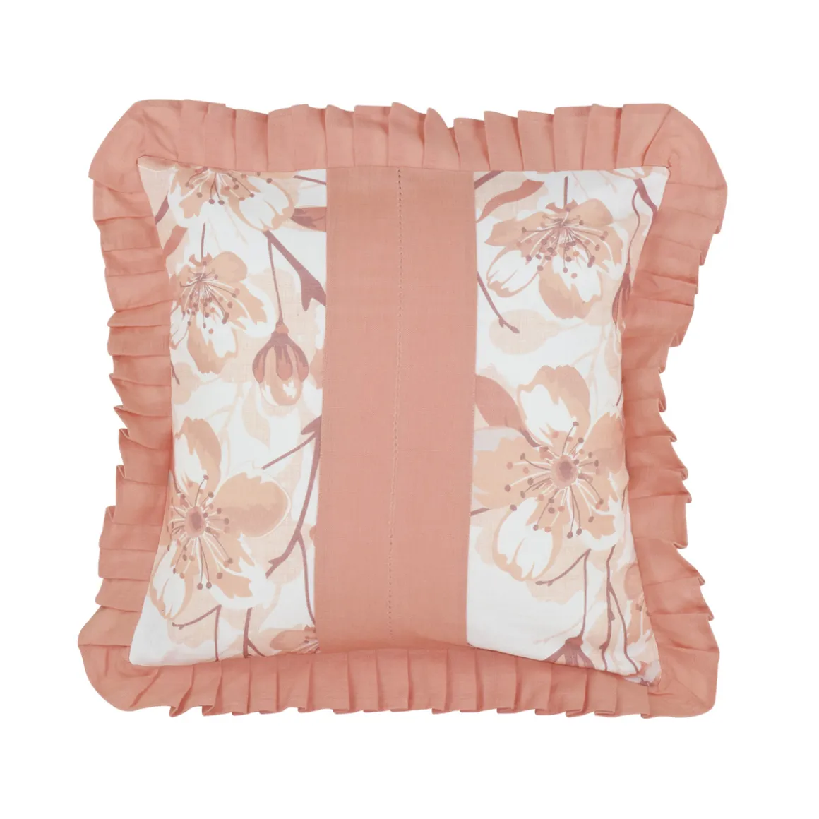Questo cuscino arredo con zip e frill in lino e cotone con stampa floreale digitale rientra nella linea cucina Melissa di Preziosa Luxury Home. Il cuscino arredo Melissa grazie alle delicate nuance del rosa pesca o delle più neutre nuance del tortora porta in casa l’allegria e la spensieratezza della primavera.