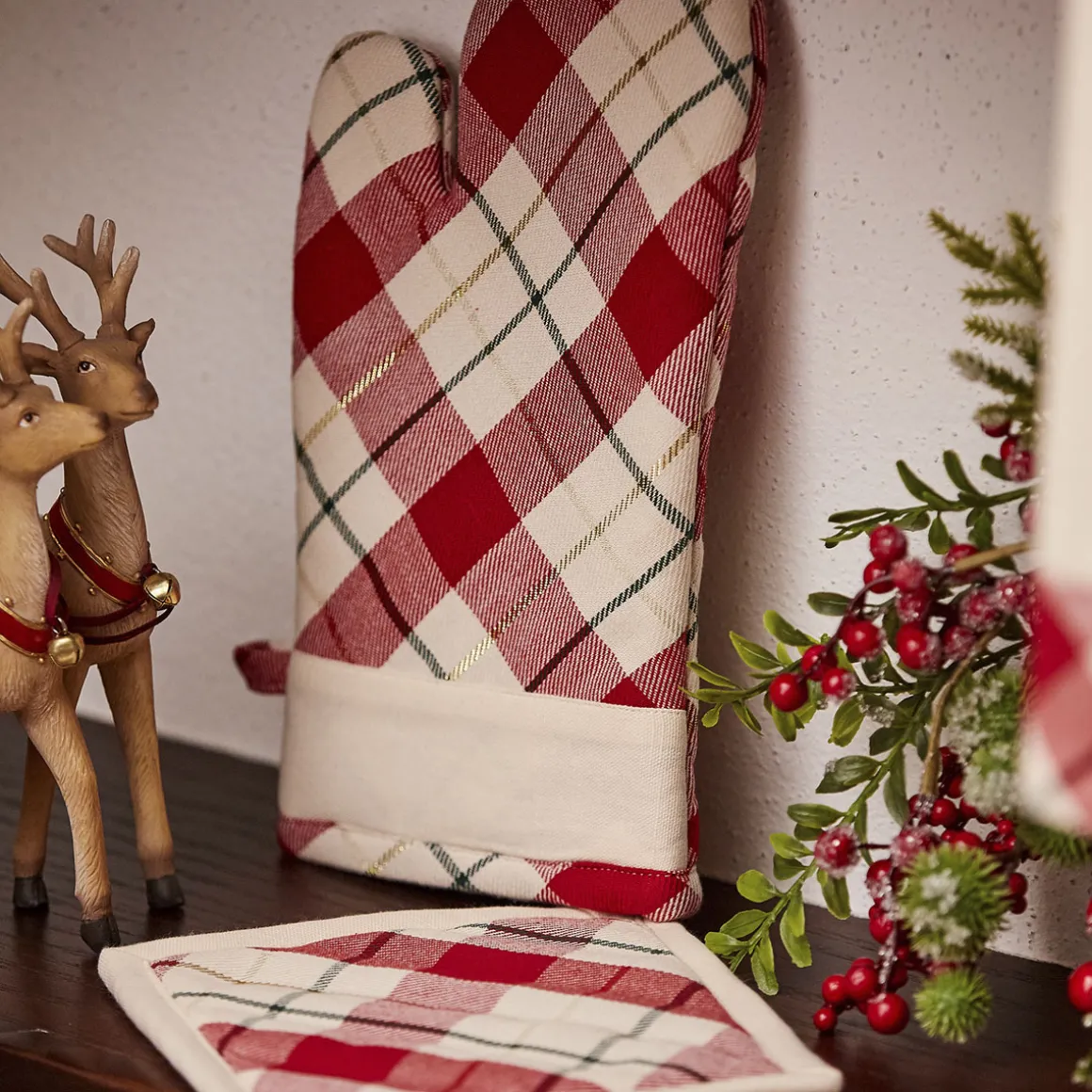 Guanto forno e presina a quadri con bordo tinta unita LAVORATO A MANO della Christmas Collection di Preziosa Luxury Home .