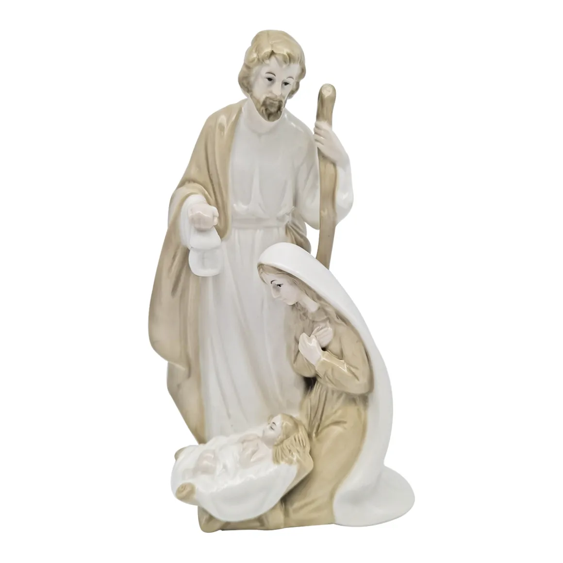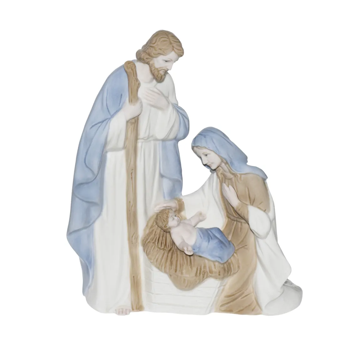 Natività monoblocco in porcellana lucida, sia nei colori del bianco, azzurro e beige, e sia bianco e beige, dipinto a mano rientra nella nuova collezione di