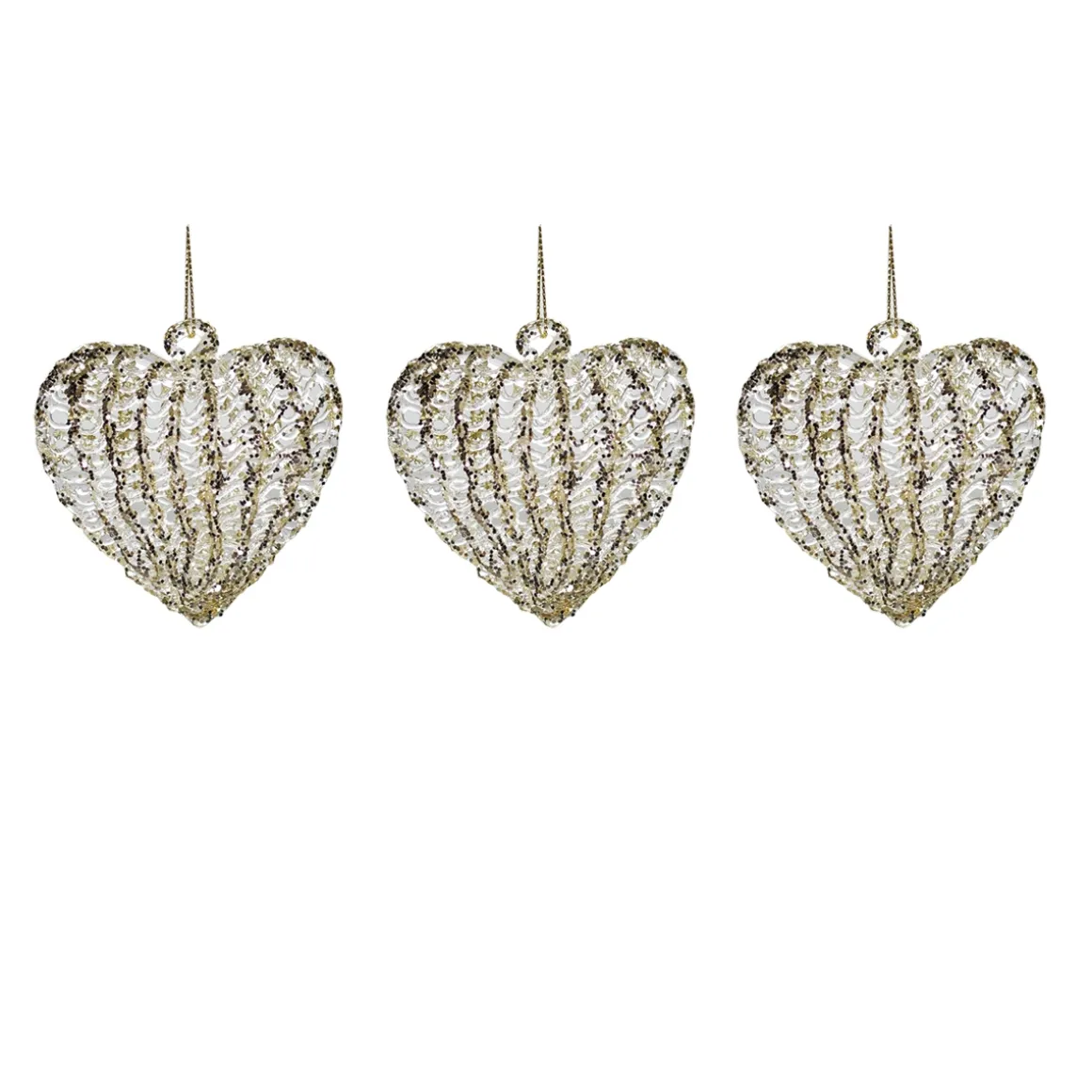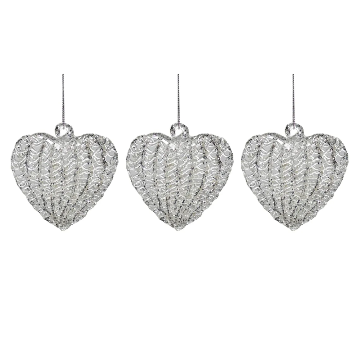 Set 3 palle di Natale a forma di cuore in vetro filato, la decorazione natalizia perfetta per abbellire e rendere unico il tuo albero di natale