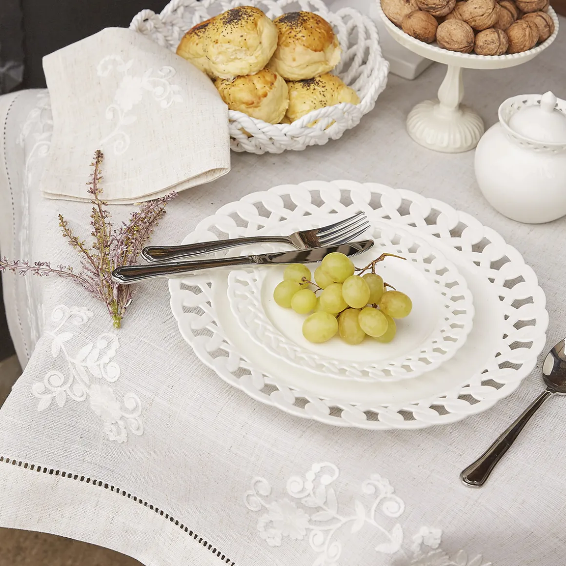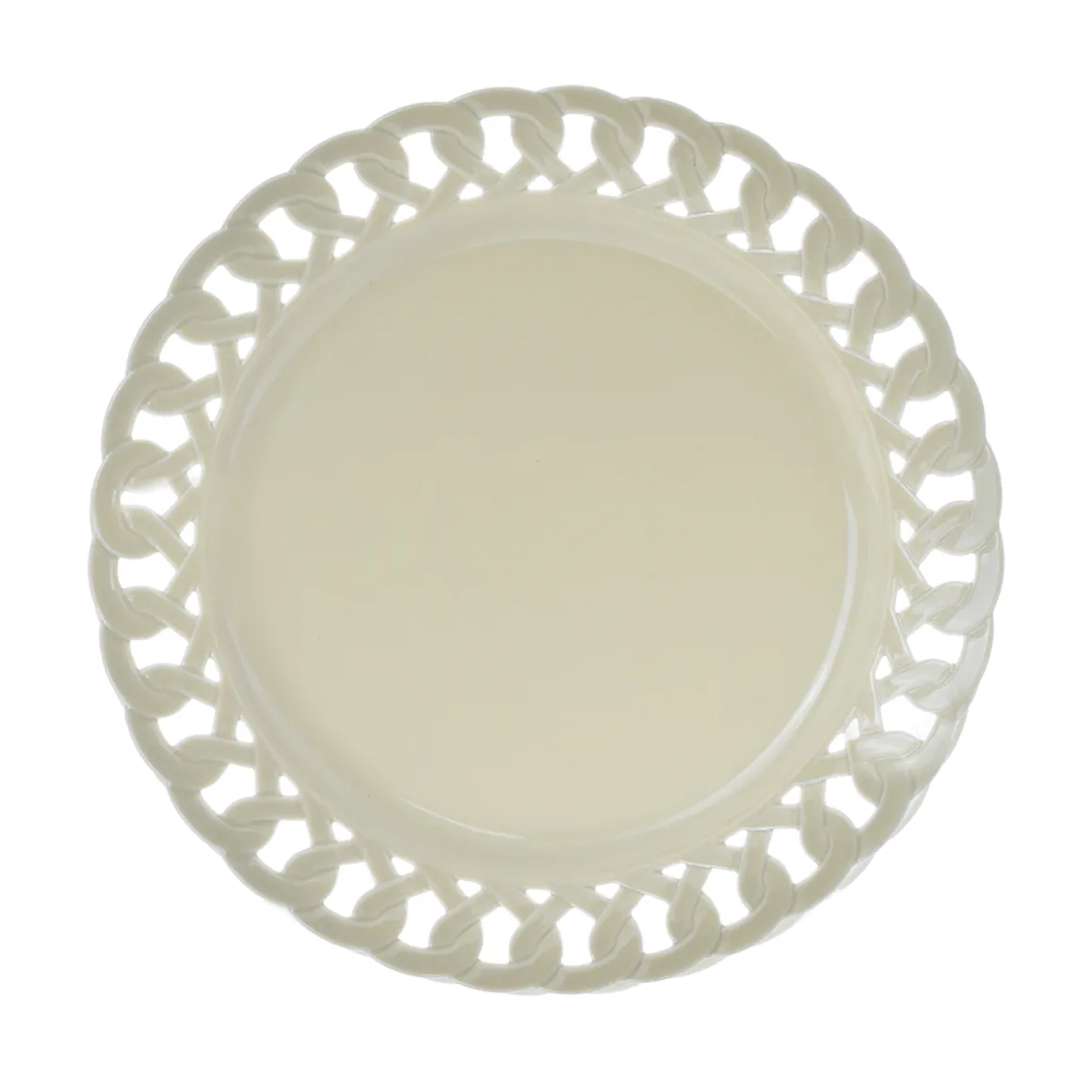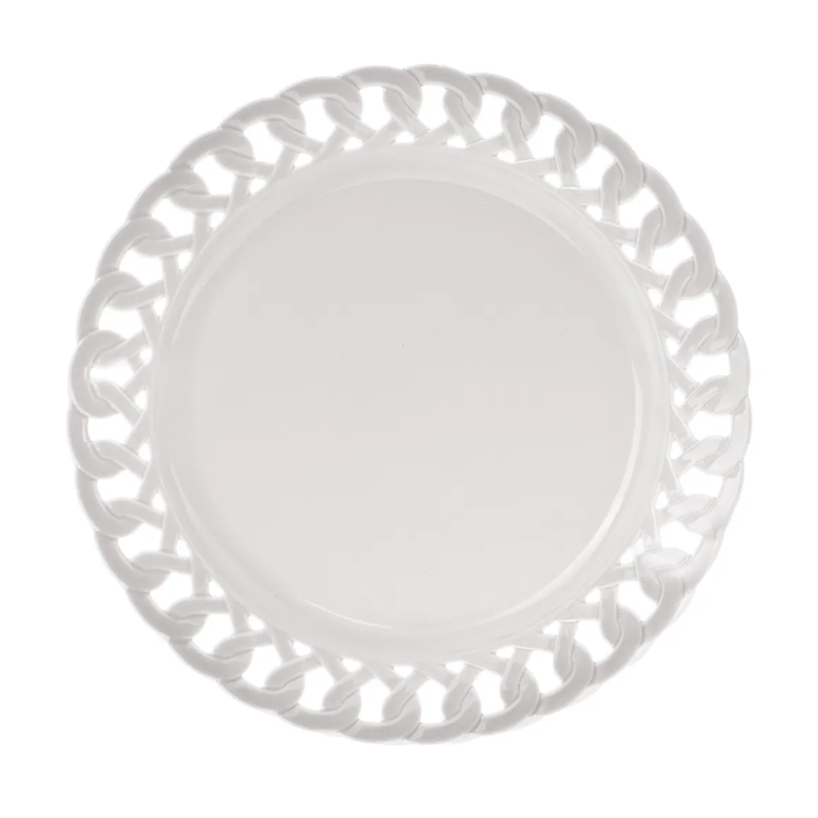 Piatto tondo da portata in porcellana con bordo lavorato traforato: