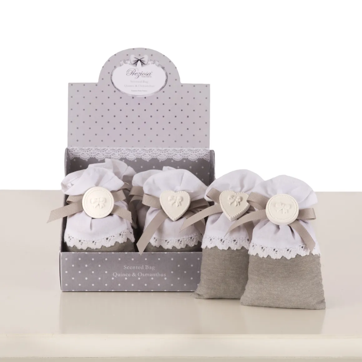 I sacchetti profumati all’essenza di mela cotogna e osmanto / rosa & vaniglia ,appartengono alla collezione e alla linea profumazioni di Preziosa Luxury Home.