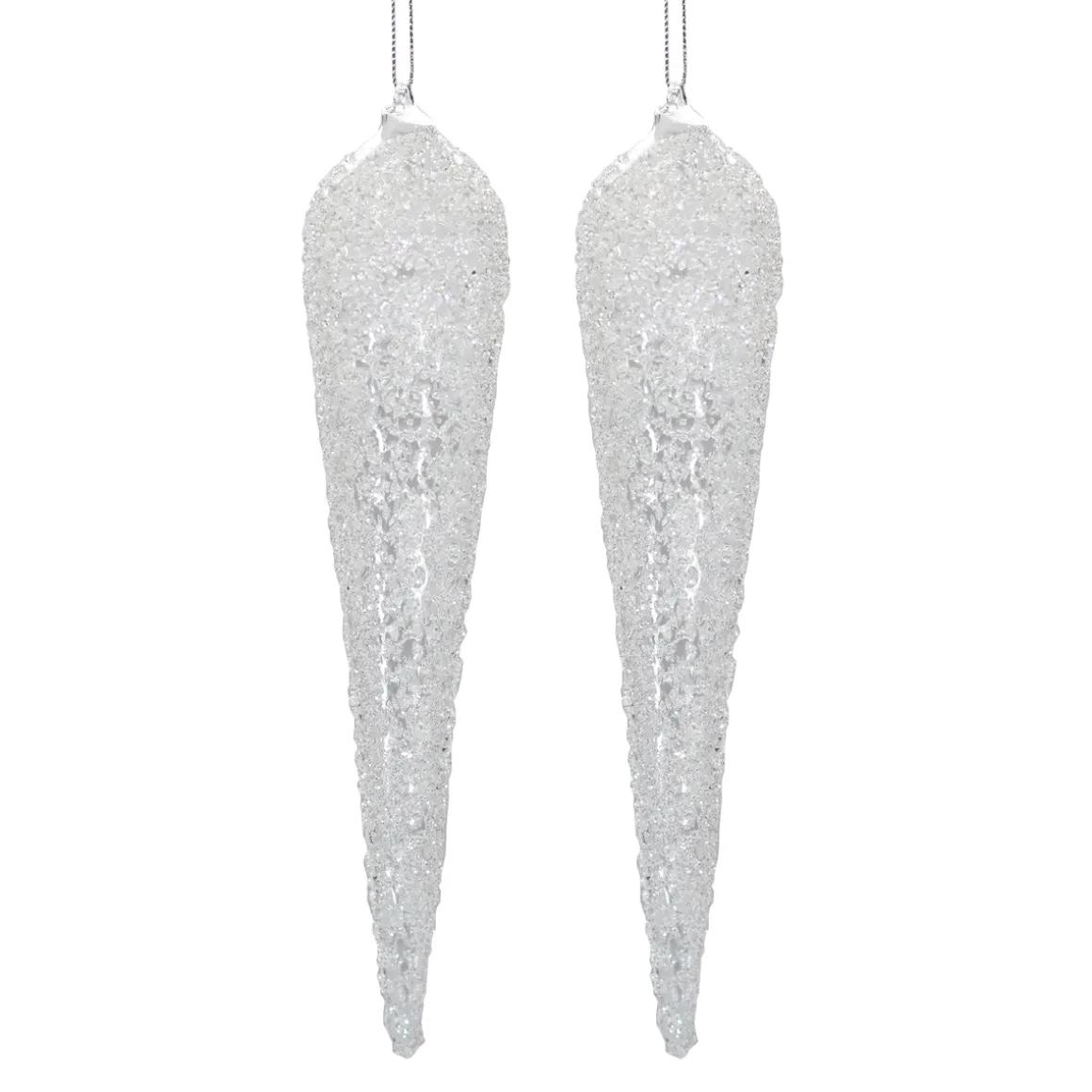 Set 2 stalattiti di Natale in vetro con glitter, la decorazione natalizia perfetta per abbellire e rendere unico il tuo albero di natale