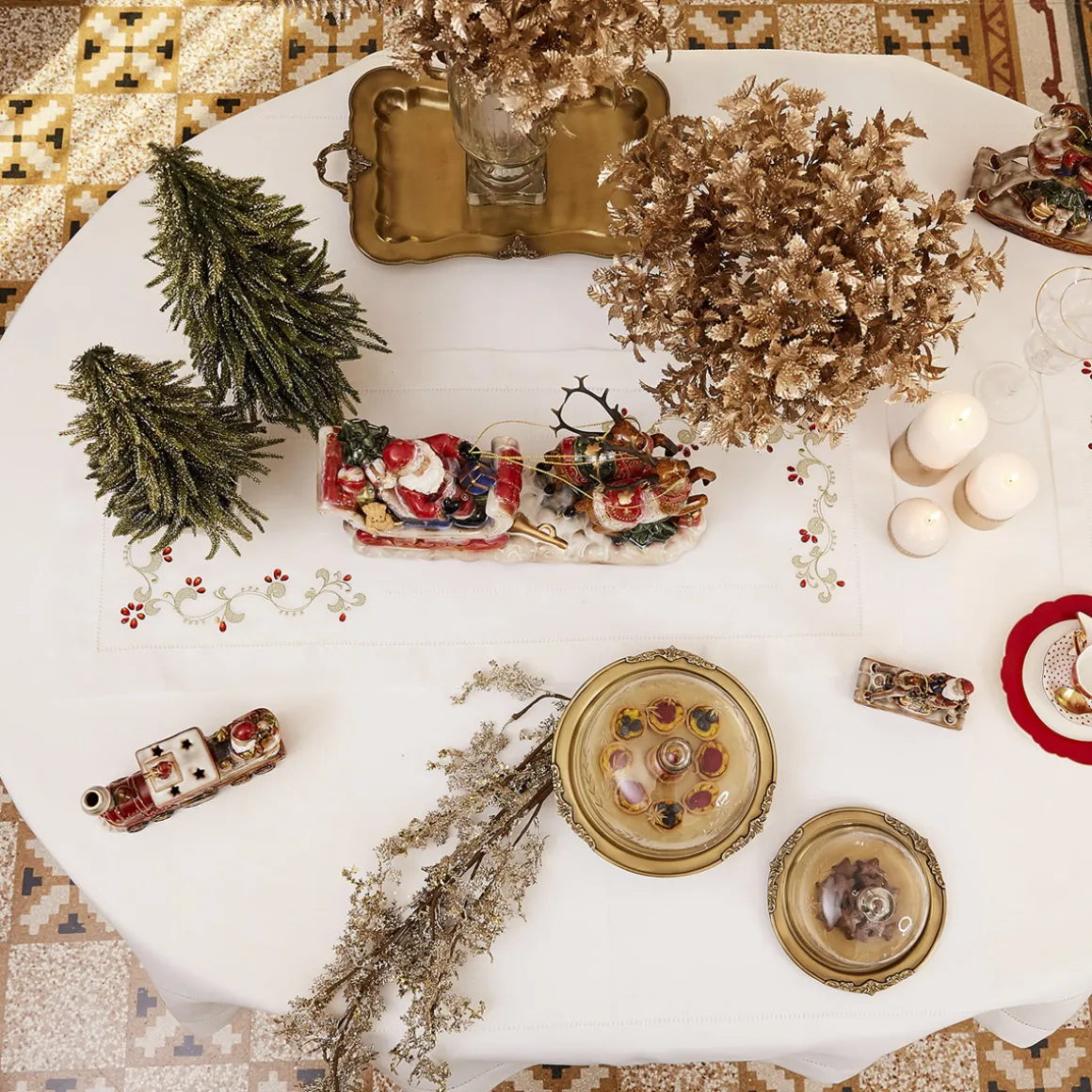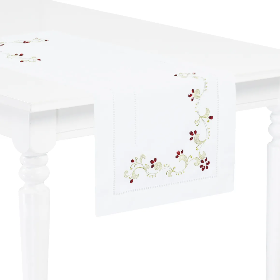 Striscia con decoro ricamato impreziosito da pietre cucite a mano e orlo a giorno