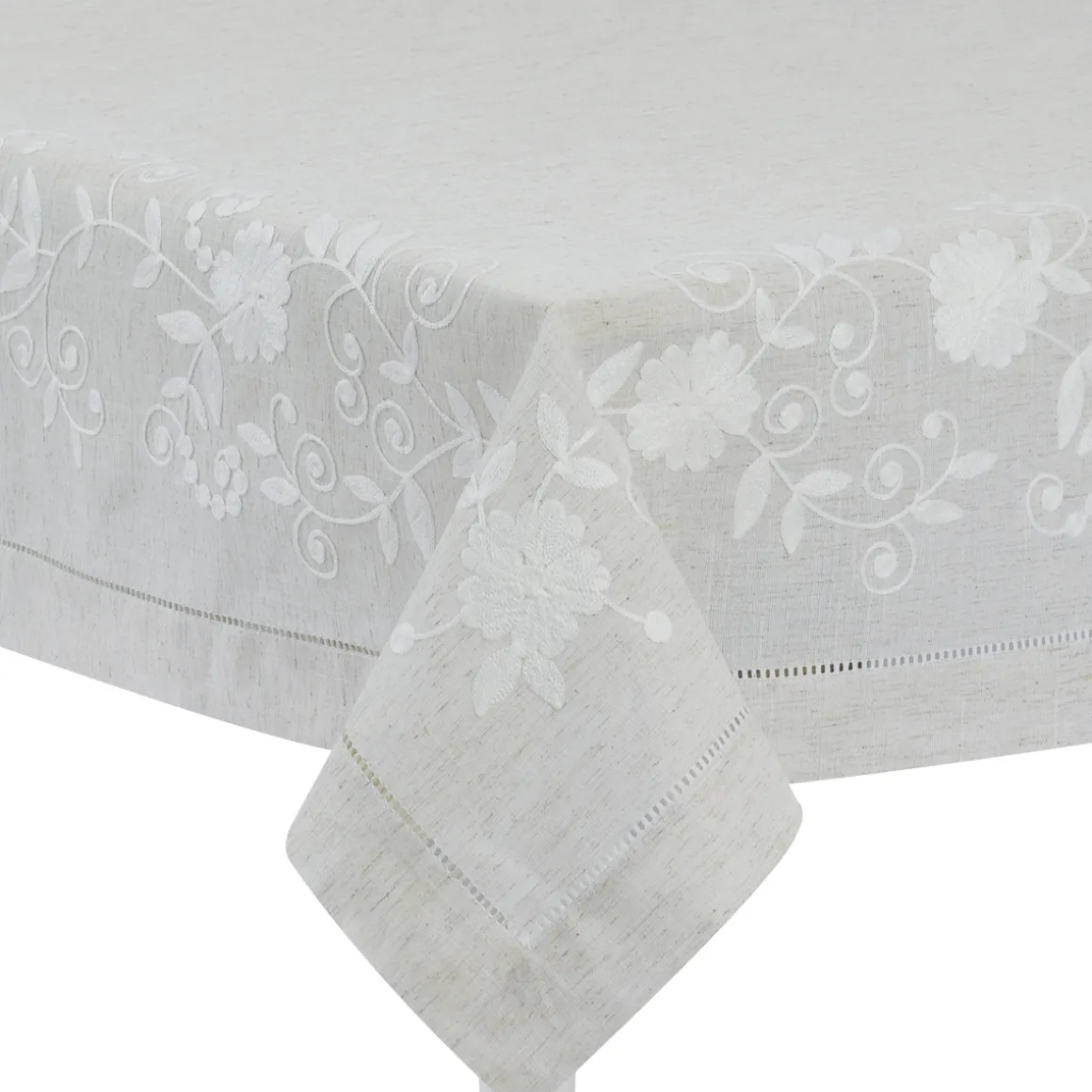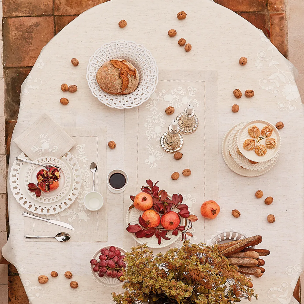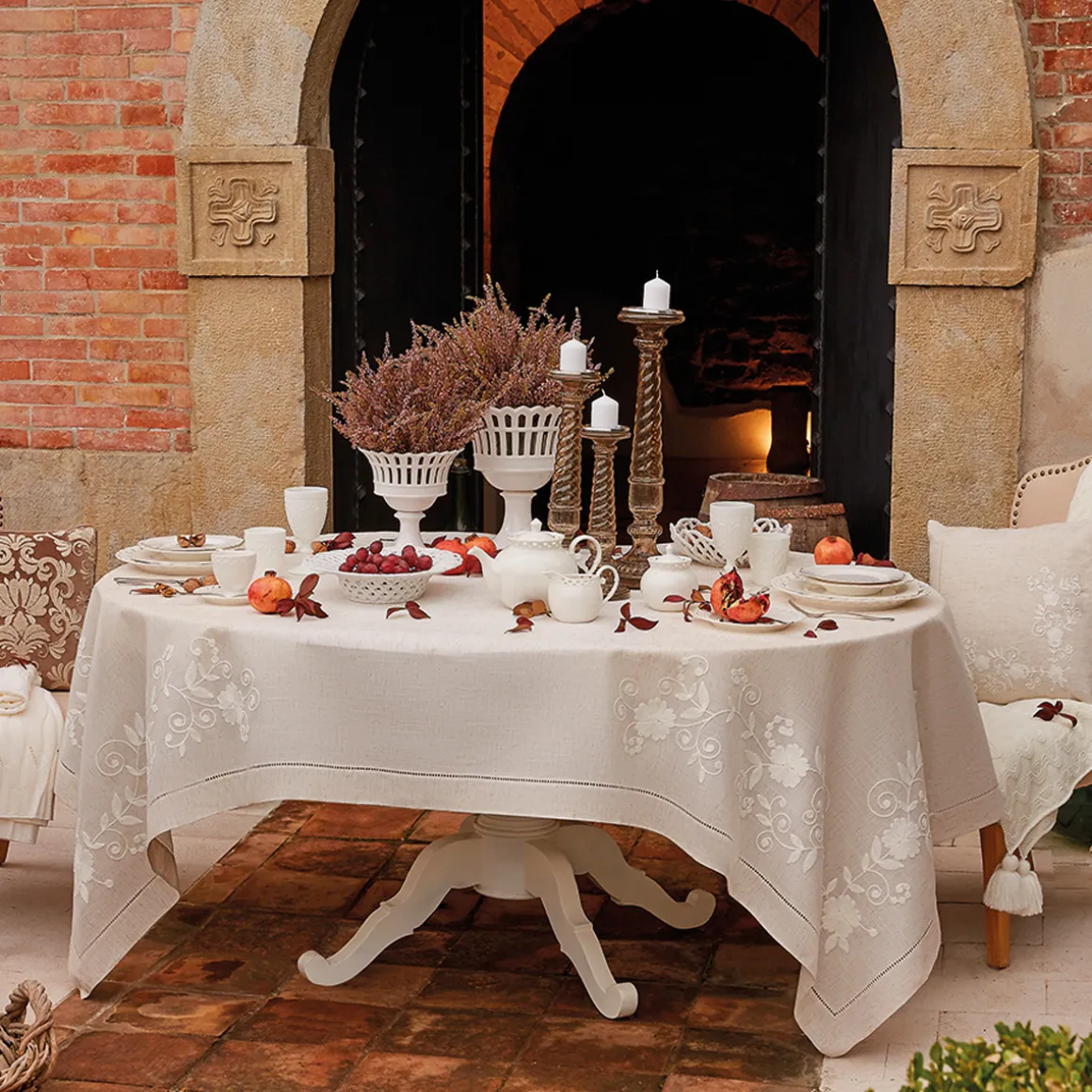 Tovaglia con ricamo orlo a giorno punto lana piazzato lavorata a mano. La tovaglia ideale per tutte le occasioni.
