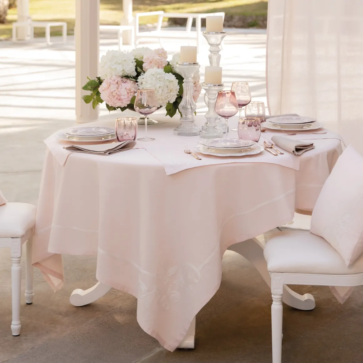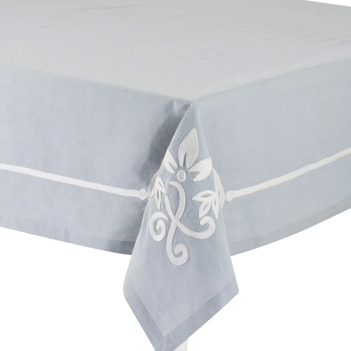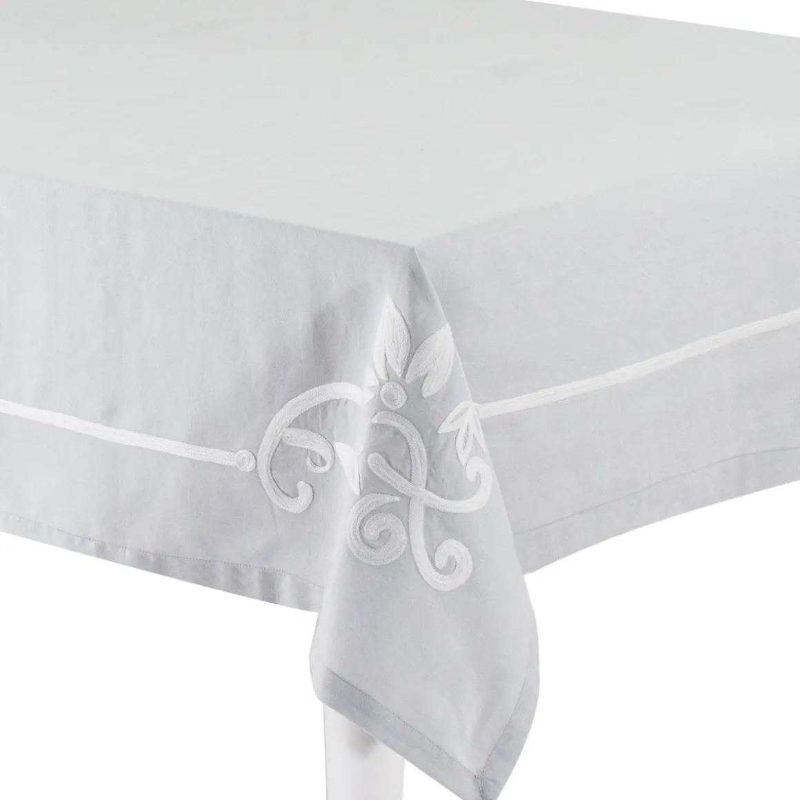 Questa tovaglia in lino e cotone rientra nella linea cucina Annabelle di Preziosa Luxury Home. La tovaglia Annabelle con ricamo lavorato a mano è disponibile nei colori cielo, cipria e grigio, perfetta per donare alla casa un’atmosfera romantica ed elegante.