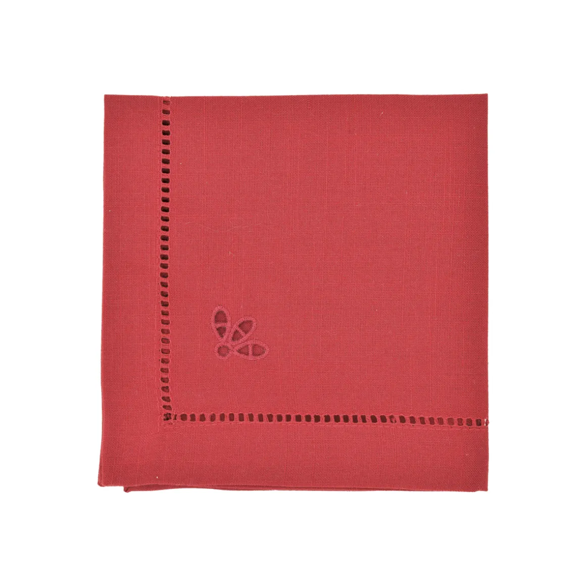 Tovaglia tinta unita rosso ricamata a mano.