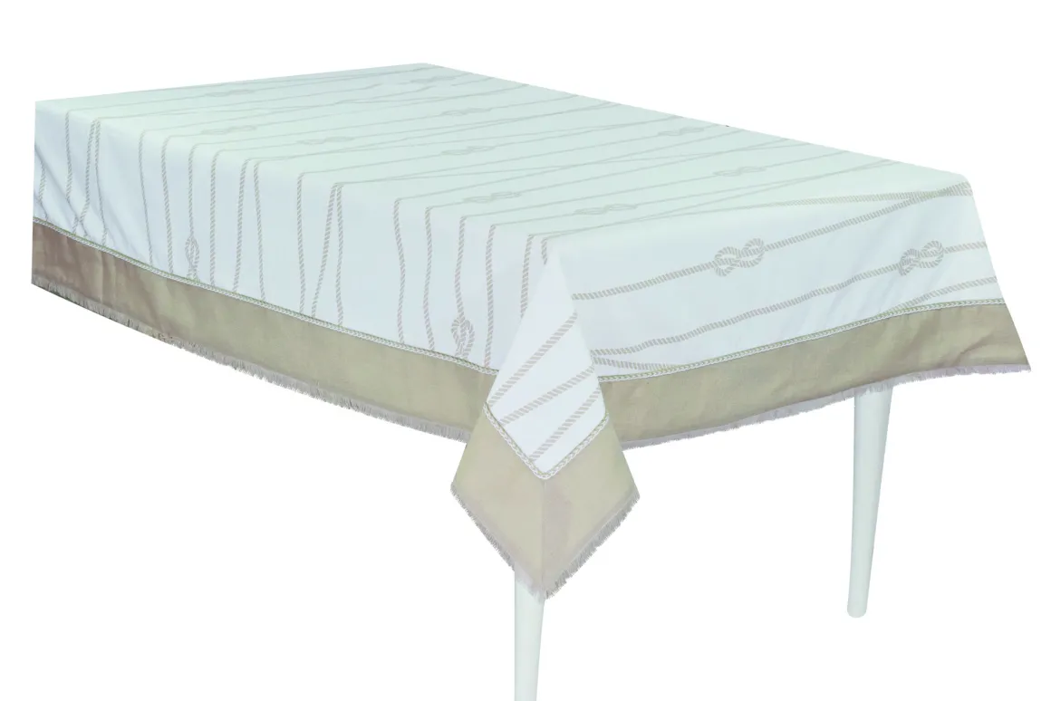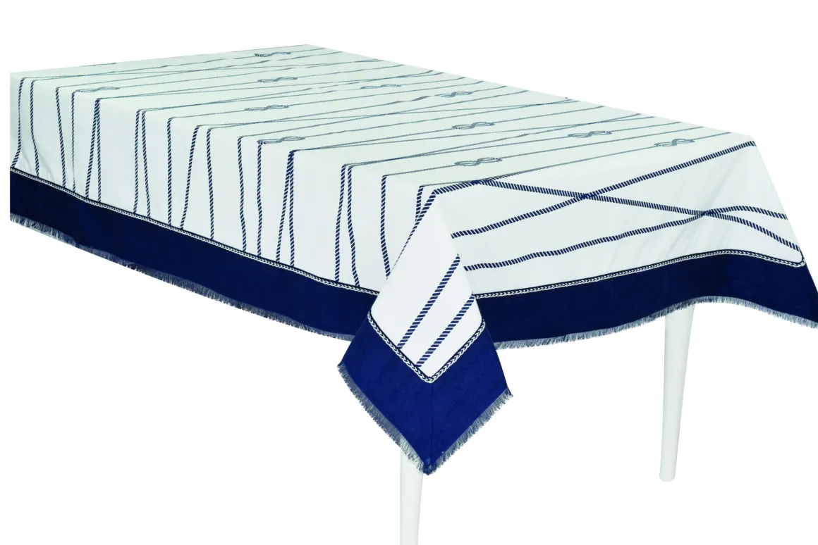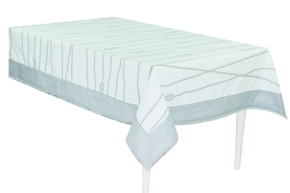 Ispirato alle onde del mare ed alla sua libertà ,la linea Zante è una novità 2022 della collezione Preziosa Luxury Home .In panama fiammata è attraversata da intrecci di funi e nodi Savoia stampati ,ideale per le tavole primaverili ed estivi,ma anche per la barca.In 3 diversi colori blu,grigio e naturale