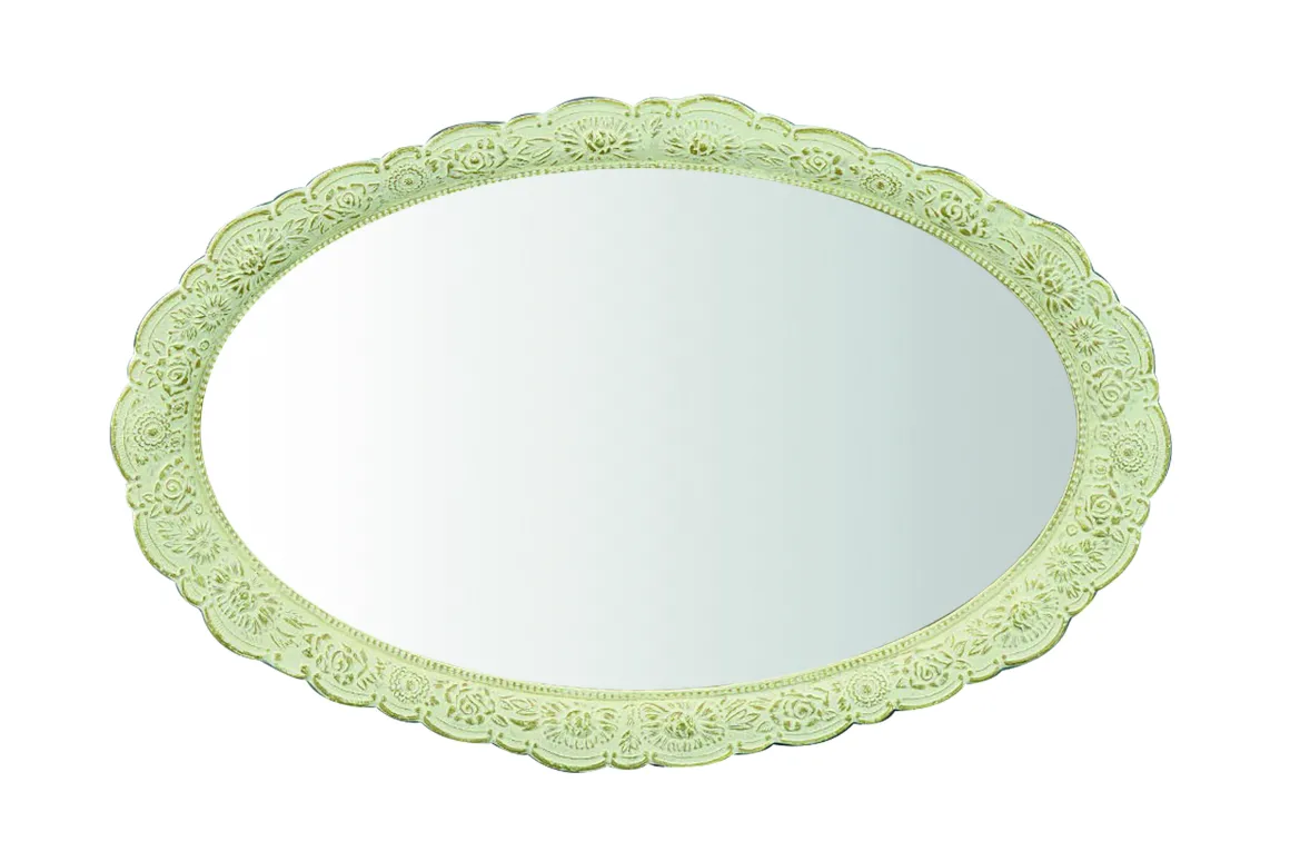 Per la nuova collezione Hanna Home 2022 il Vassoio Specchio, dalla forma ovale con finiture anticate, è perfetto per trasportare bevande .